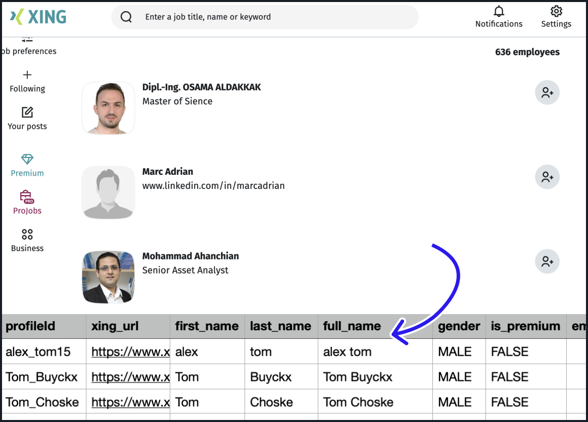 One click to export Xing company employees, Save to CSV, Excel and JSON file.
